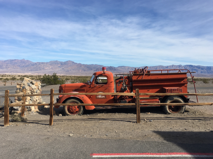 站在死亡谷的 Bungalette City 旧址前,脚下是…